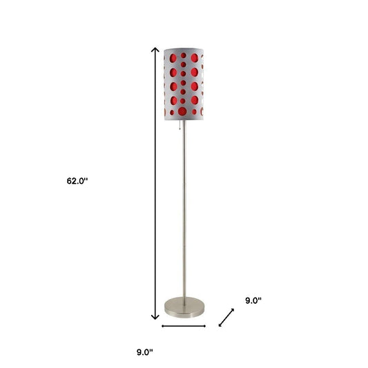 62" Satin Nickel and Red Chrome Modern Floor Lamp