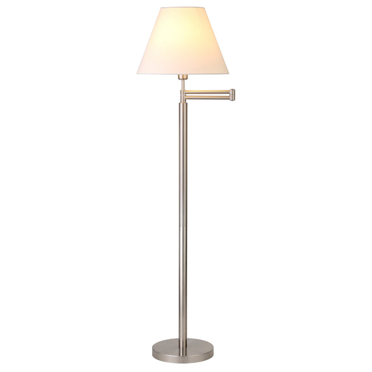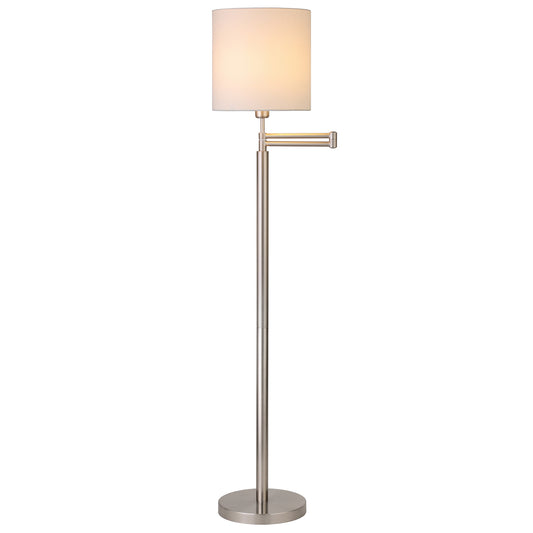 62" Nickel Swing Arm Floor Lamp With White Frosted Glass Drum Shade