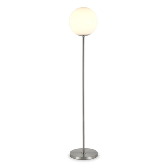 62" Nickel Novelty Floor Lamp With White No Pattern Frosted Glass Globe Shade