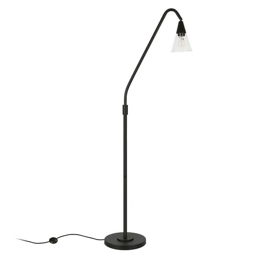 65" Black Reading Floor Lamp With Clear Transparent Glass Dome Shade