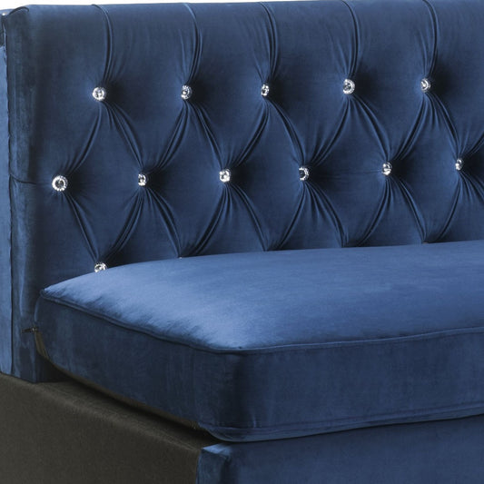 69" Blue Velvet And Silver Sofa With Two Toss Pillows