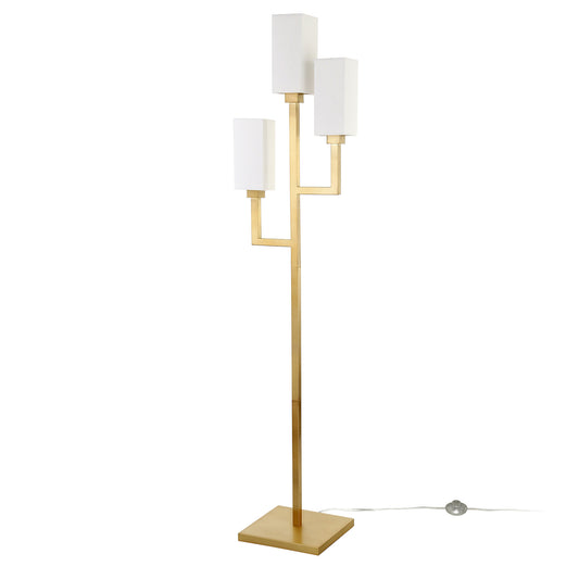 69" Brass Three Light Torchiere Floor Lamp With White Frosted Glass Rectangular Shade