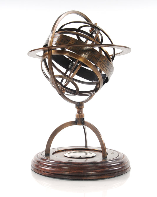 7" X 7" X 11.5" Armillary Sphere On Wood Base
