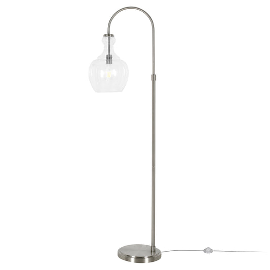 70" Nickel Arched Floor Lamp With Clear Transparent Glass Dome Shade