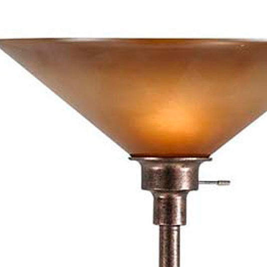 70" Rusted Torchiere Floor Lamp With Rust Frosted Glass Dome Shade