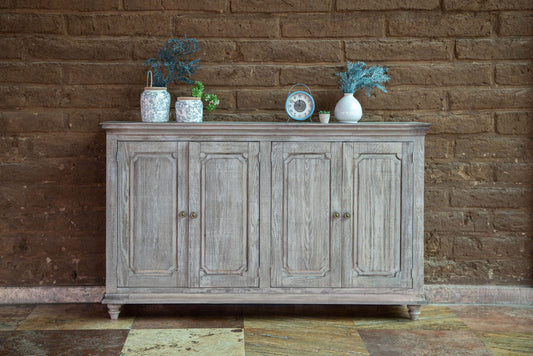 71" Sand Solid and Manufactured Wood Distressed Credenza
