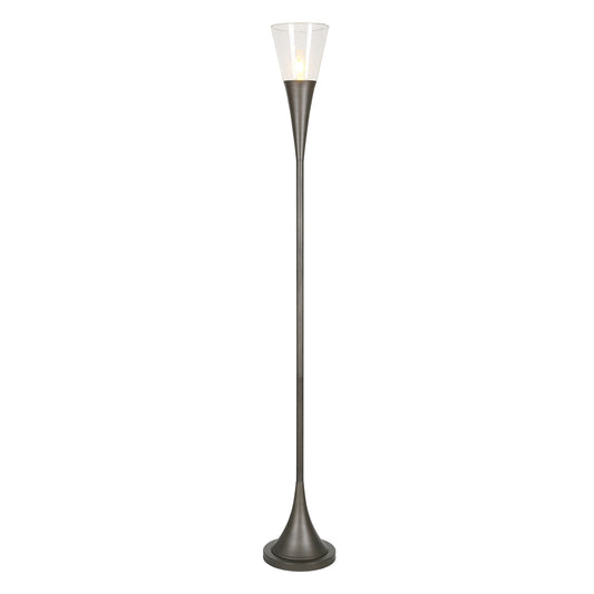71" Steel Torchiere Floor Lamp With Clear Seeded Glass Cone Shade