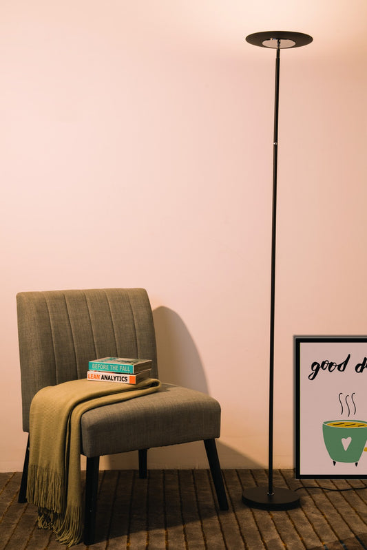 72" Black Column Floor Lamp With Off White Solid Color Rectangular Shade