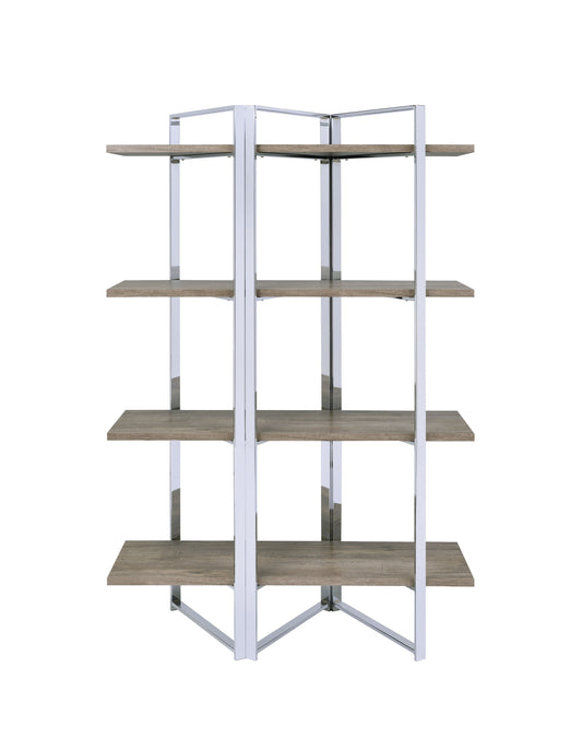 72" Brown and Silver Metal Four Tier Etagere Bookcase