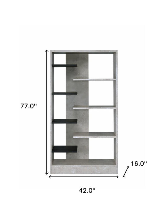 78" Gray And White Four Tier Barrister Bookcase With Three Drawers