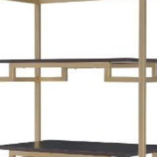 78" Gold and Black Metal Four Tier Etagere Bookcase with a Drawer