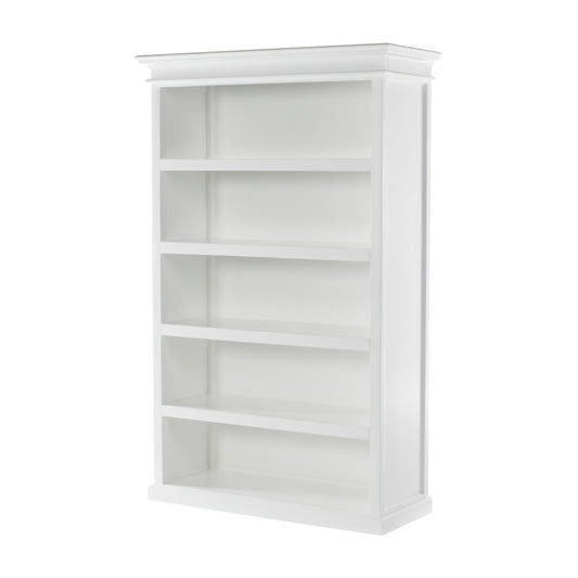 77" Antiqued White Solid Wood Five Tier Standard Bookcase
