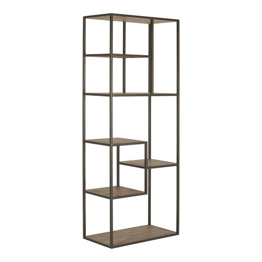 79" Reclaimed Wood and Metal Seven Tier Asymmetrical Bookcase