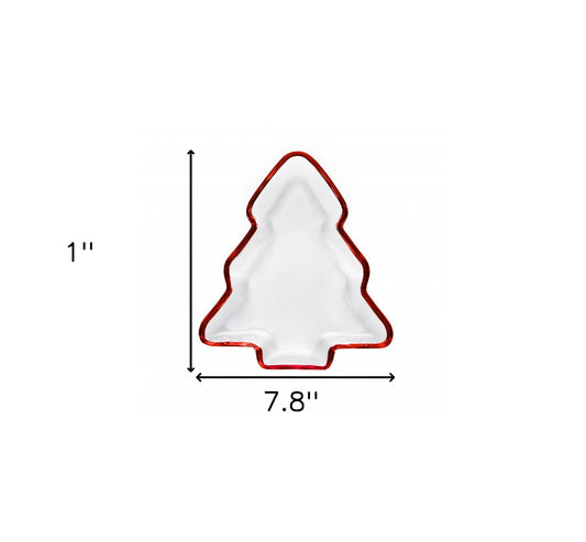 8" Clear and Red Christmas Tree Crystal Serving Tray