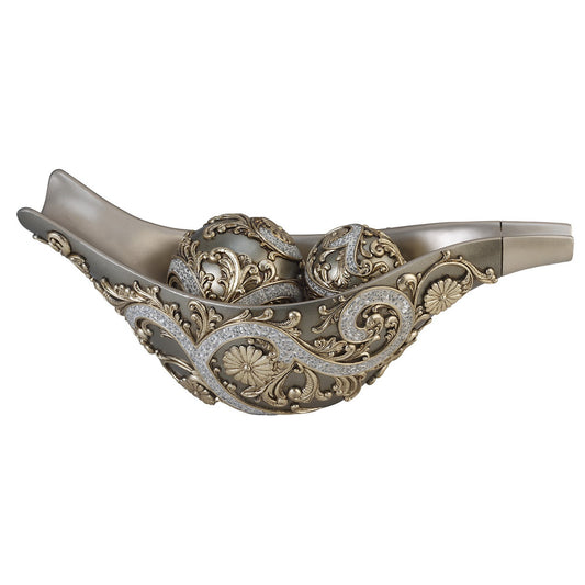 8" Silver Polyresin Filigree Decorative Bowl With Orbs