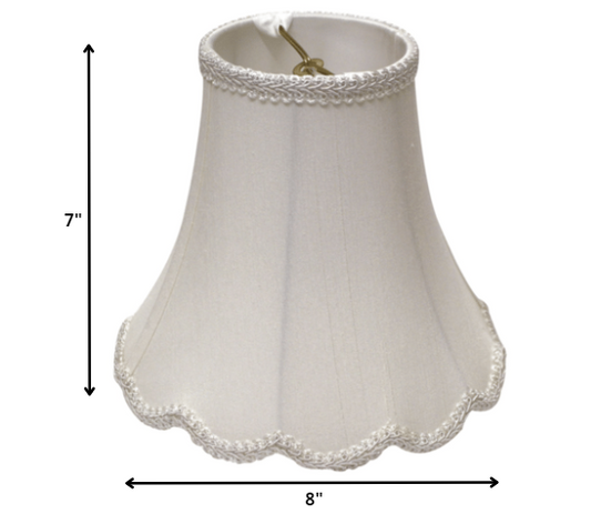 8" White Slanted Scallop Bell Monay Shantung Lampshade