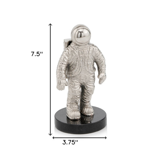 8" Silver and Black Marble Aluminum Space Man Sculpture