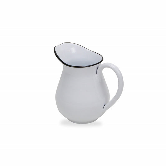 8" White with Black Rim Metal Hand Painted Pitcher Sculpture