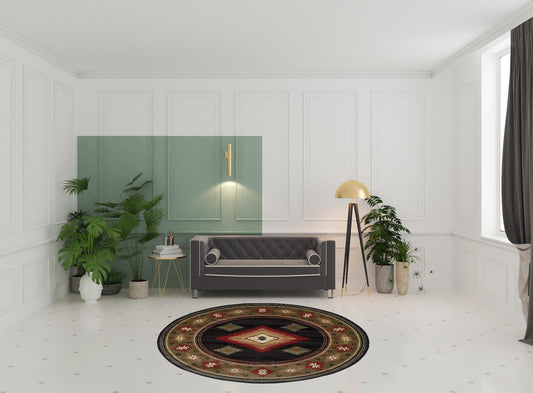 8' Black Round Southwestern Power Loom Stain Resistant Area Rug