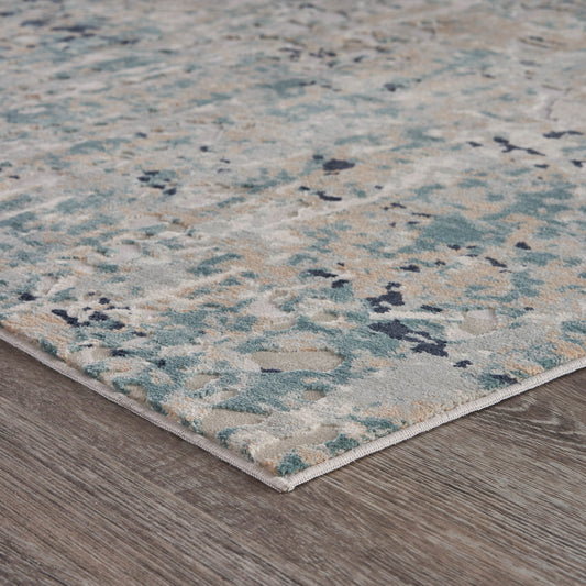 8' Gray Blue Taupe And Cream Abstract Distressed Runner Rug