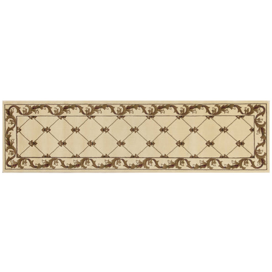 8' Ivory Quatrefoil Power Loom Distressed Stain Resistant Runner Rug
