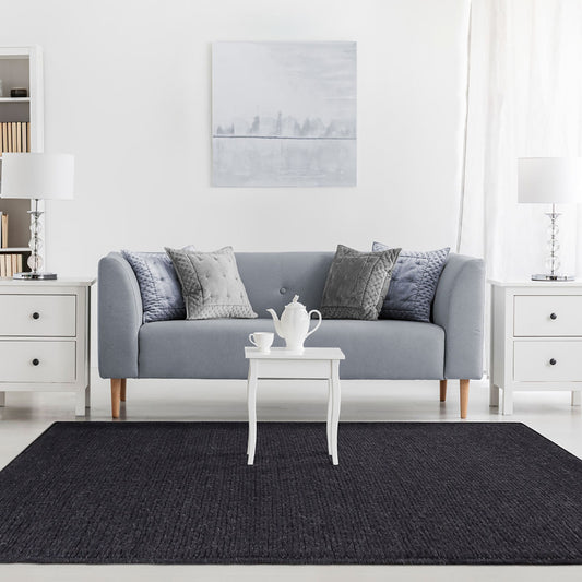8' X 10' Black Wool Handmade Stain Resistant Area Rug