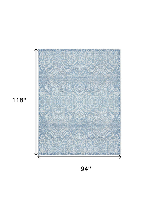 8' X 10' Blue Floral Distressed Washable Area Rug