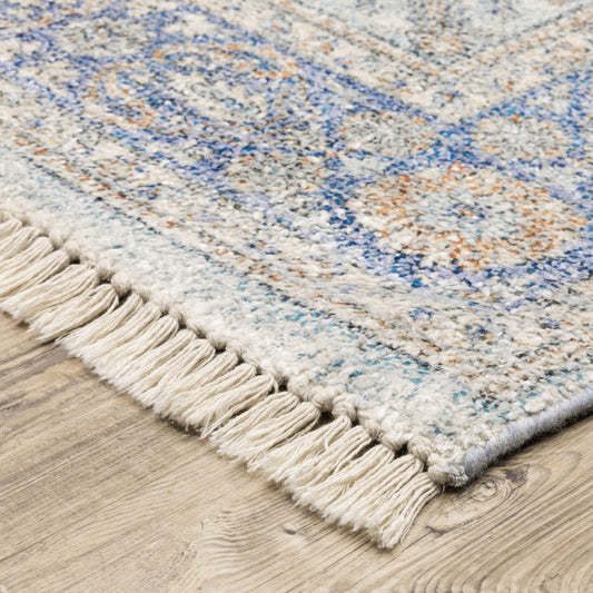 8' X 10' Blue Geometric Power Loom Stain Resistant Area Rug