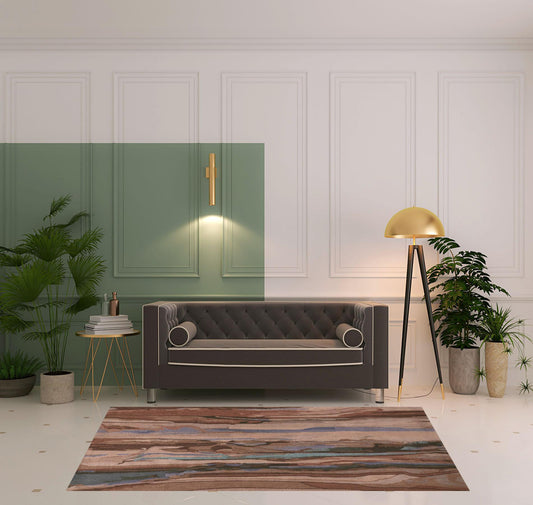 8' X 10' Blue Teal Gold Rust And Beige Abstract Power Loom Stain Resistant Area Rug
