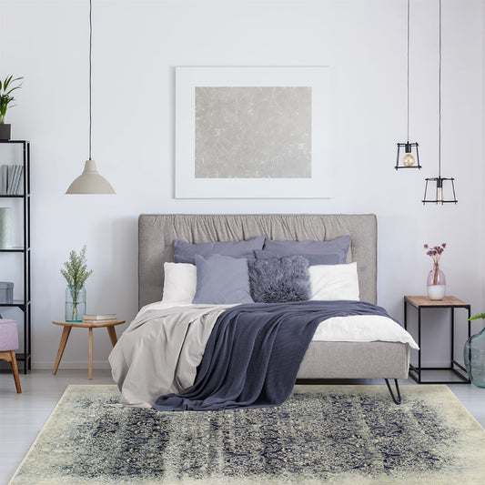 8' X 10' Midnight Navy Patchwork Power Loom Stain Resistant Area Rug
