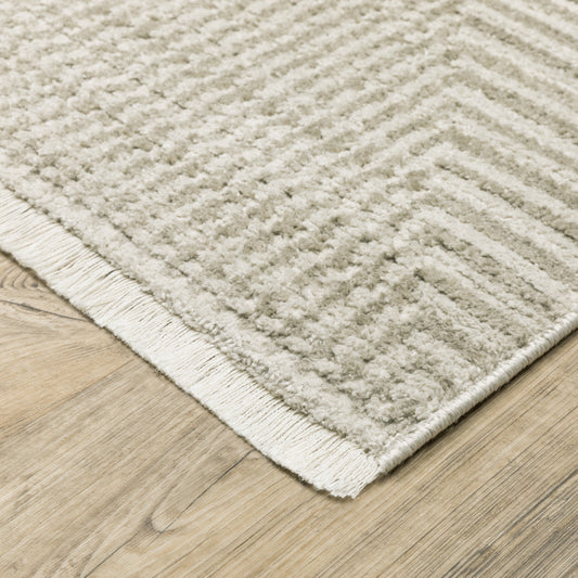 8' x 11' Beige and Ivory Geometric Power Loom Area Rug