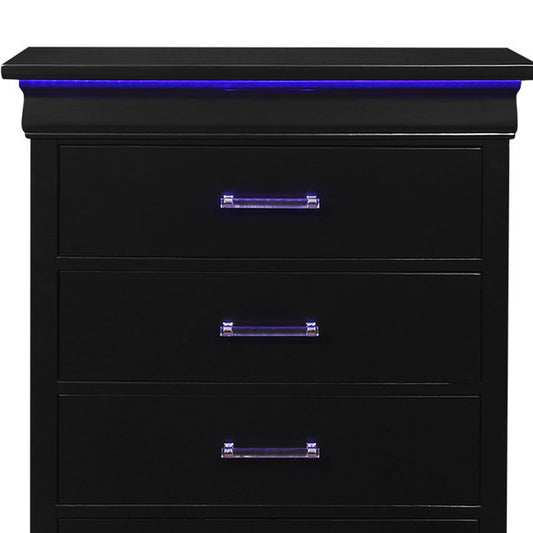 16" Black Solid Wood Five Drawer Chest with LED Lights