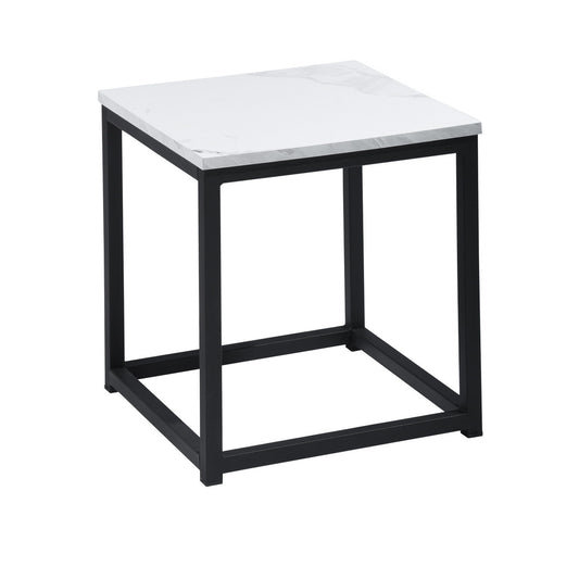 16" Black And Marble White Manufactured Wood And Steel Square End Table