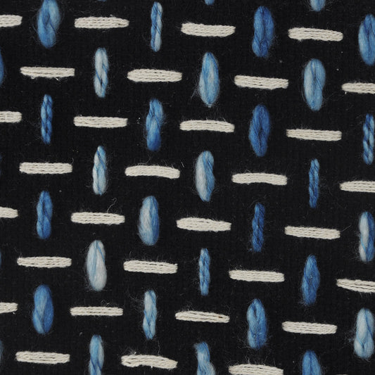 16" Black And White Cotton And Natural Round Chevron Ottoman