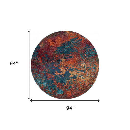 8' X 8' Sunset Round Abstract Power Loom Non Skid Area Rug
