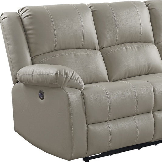 81" Beige And Black Faux Leather Reclining USB Sofa