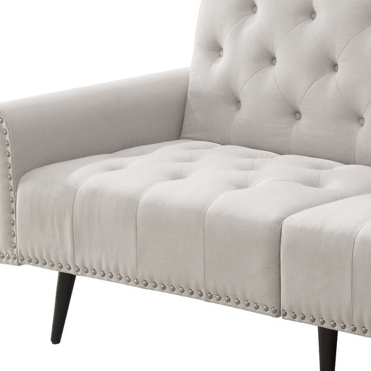 82" Beige Velvet And Black Sofa