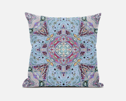 16" Blue Magenta Boho Chic Floral Suede Throw Pillow
