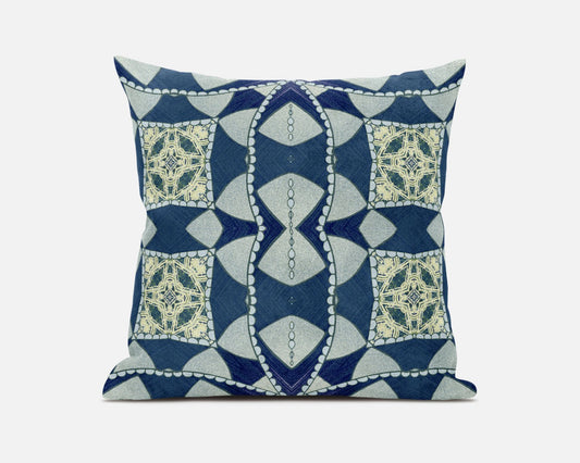 16" Blue Cream Cloverleaf Boho Suede Throw Pillow