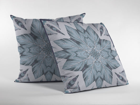 16" Blue Gray Floral Suede Throw Pillow