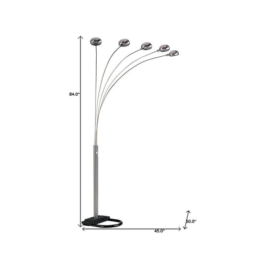 84" Nickel Five Lights Arc Floor Lamp With Nickel Dome Shade