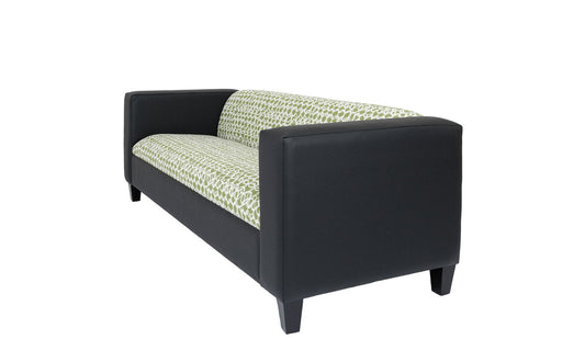 84" Gray Faux Leather And Black Sofa With Ottoman