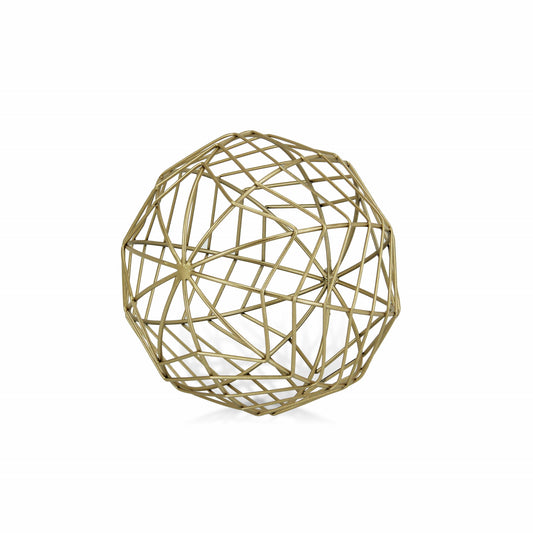 9" Gold Metal Abstract Hand Painted Decorative Orb Sculpture