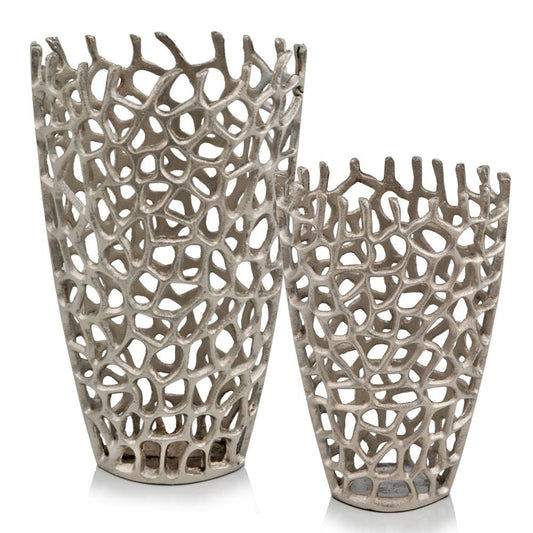 9" X 9" X 16" Silver Aluminum Branch Twig Large Table Vase