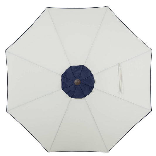 9' Beige And Navy Polyester Octagonal Tilt Market Patio Umbrella
