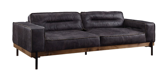 96" Antique Ebony Black Top Grain Leather Sofa