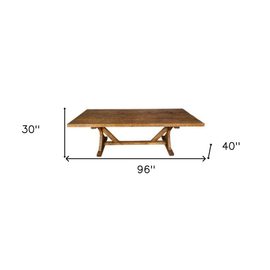 96" Brown Reclaimed Wood Trestle Base Dining Table
