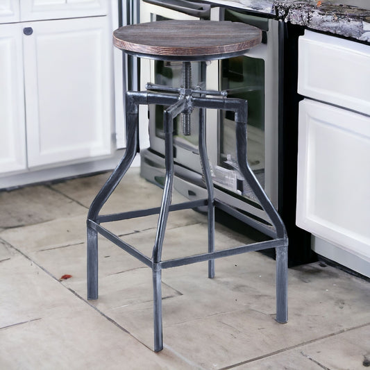 Adjustable Industrial Pine Wood Swivel Bar Stool
