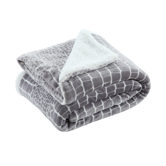 Beige and Ivory Knitted PolYester Animal Print Plush Throw Blanket