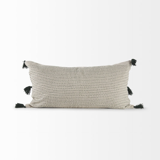 Beige Black Eyelash Fringe Textured Lumbar Pillow